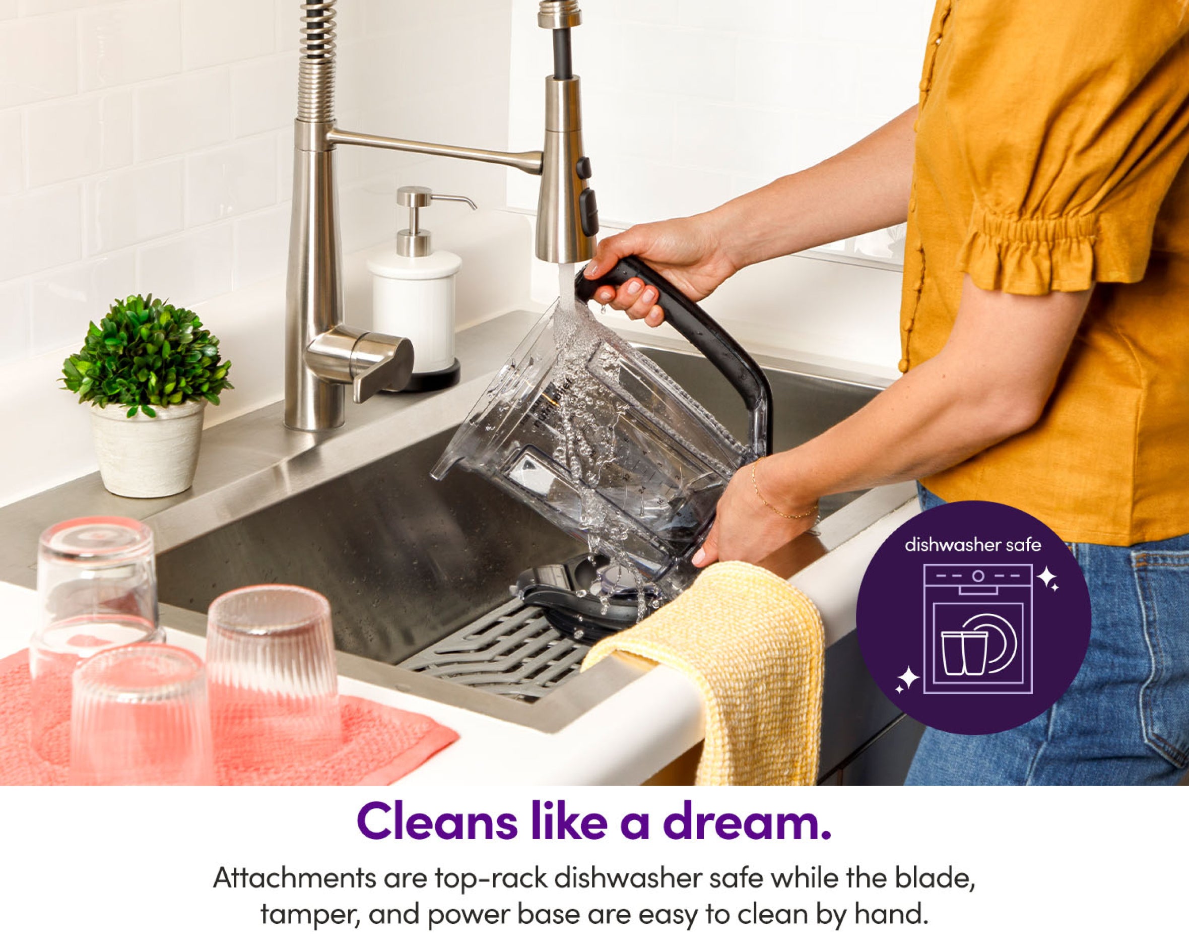 Its high-performance motor has the brawn to blend silky smoothies, purées, nut